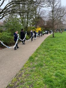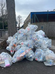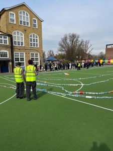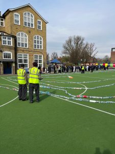 Year 6 took part in another initiative in partnership with Our Planet Needs You this week. The theme for this initiative was labelled Rise Up which focused on raising awareness to the amount of plastic waste people create. We enlisted the help of the whole school to bring in as much plastic as possible from home. After a week of collecting, Year 6 were tasked with creating a long plastic snake by connecting all the bottles using biodegradable tape. Year 6 used teamwork and listening skills to construct a 270m long structure! Once built, we laid it around Wormholt Park. The volunteers for OPNY along with the year 6’s bagged the plastic snake and waited for it all to be collected be Veolia.