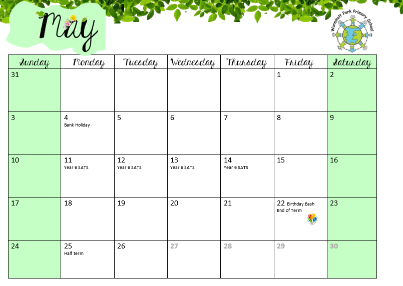 • 4th May – Bank Holiday – School closed